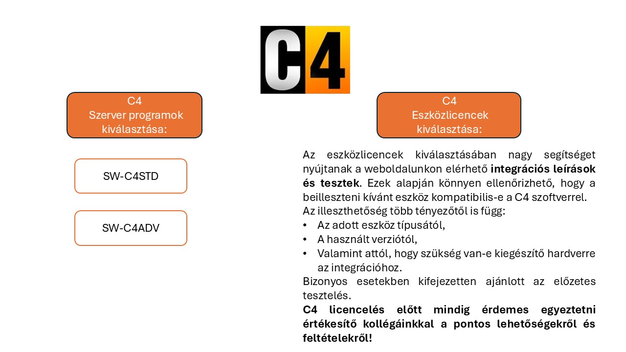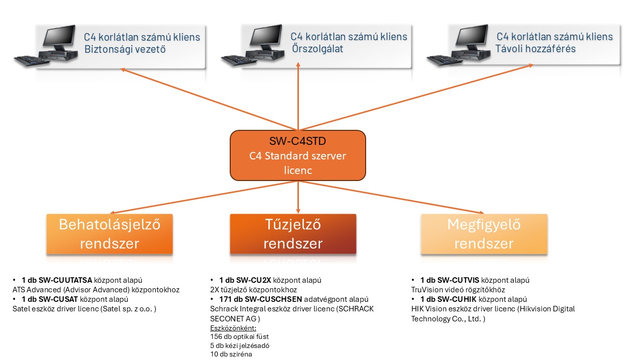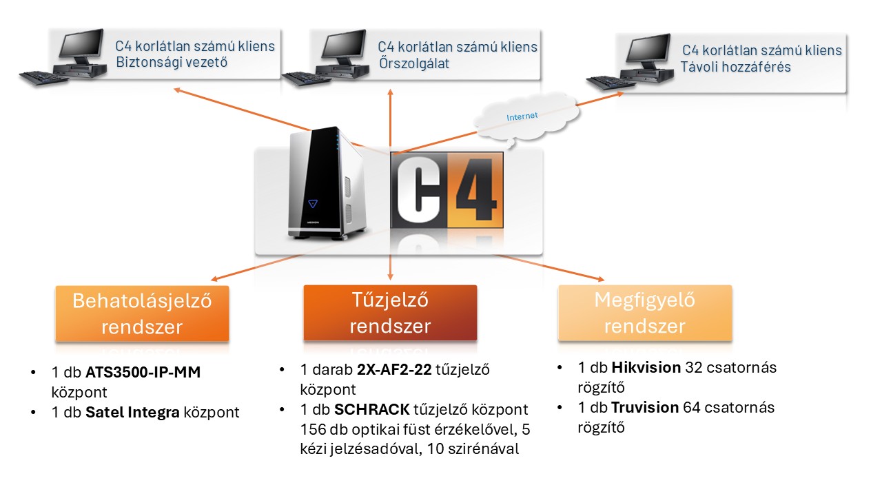 Legyen szó beléptetőről, behatolásjelzőről, tűzjelzőről, videómegfigyelésről vagy akár épületgépészeti rendszerekről – a C4 mindezt közös felületre hozza, és egységesen kezeli.