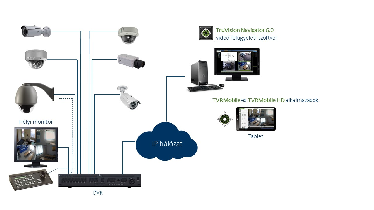 Az analóg rendszerek esetén a kamera és a rögzítő között közvetlen kábeles összeköttetés van, ez általában egy koax kábel, melyen analóg videójelként kerülnek átadásra a képek. Mondhatnánk azt, hogy ezek a „régi” rendszerek, ha nem élnék reneszánszukat újabb megoldásokkal egyre jobb és jobb minőségű képekkel a frissen fejlesztett analóg kamera protokollok. Több gyártói szabvány is létezik, a teljesség igénye nélkül ilyenek a HD-CVI, AHD, HD-SDI vagy az általunk is forgalmazott HD-TVI. Előnyük, hogy általában használható hozzájuk akár több évtizeddel ezelőtt kialakított kábelezés, ami jelentős költségmegtakarítást jelenthet, valamint, hogy maguk a kamerák is kedvezőbb árúak, mint az IP kamerák. Hátrányuk az, hogy minőségben nem érik el a legjobb IP kamerákat, valamint, hogy új rendszerek kialakítása esetén – főleg, ha azok nagy kiterjedésűek – nem éri meg közvetlen kábelt kiépíteni minden kamerához, illetve egy külön kábelen kell elvezetni hozzájuk a tápellátó kábelt is.