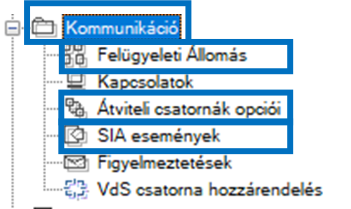 - SIA események: A távfelügyelet irányába jelentésre kerülő eseménykategóriák beállítására szolgáló menüpont