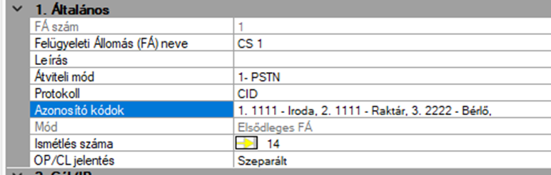 Ebben a menüpontban a következő lehetőségekben tudjuk a távfelügyeleti átjelzés főbb paramétereit beállítani:
